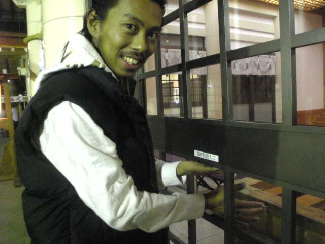 よろしくお願いします! ちょっと遅いですが!! 初詣でに行ってきました!! おさい銭箱の前に ガ~ドさくが!! おさい銭、投げにく~!!